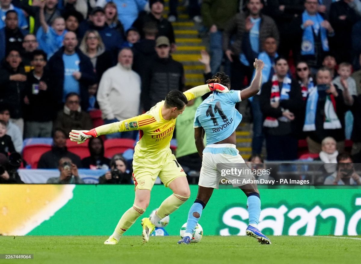 50. Doku o'ziga uzatilgan to'pga intilib yurish qildi, darvozadan Kepa chiqib keldi, jarima maydonchasi tashqarisida bo'lgani uchun u Jeremini tortib qoldi va jarima zarbasi belgilandi. Kepaga esa sariq!